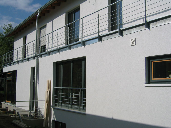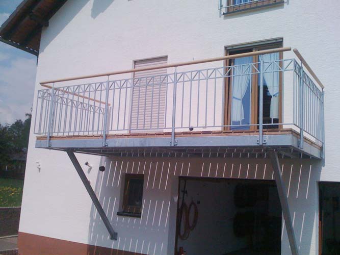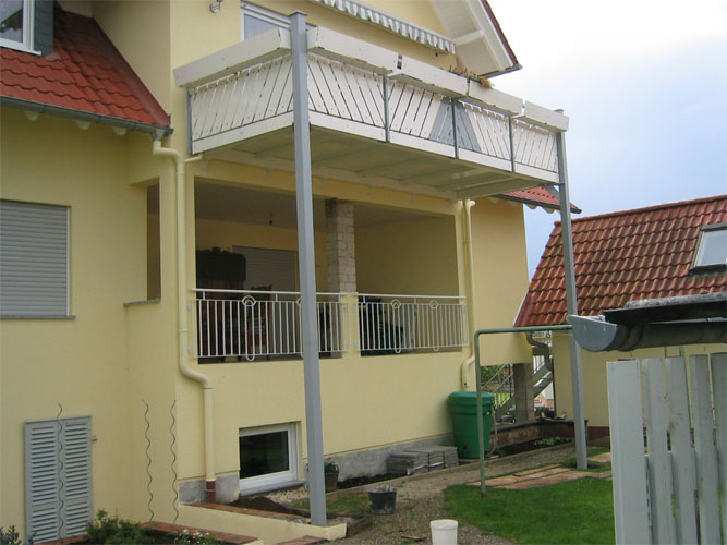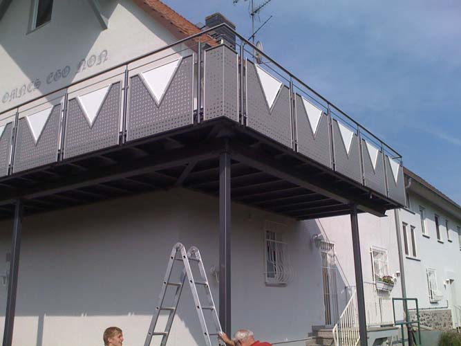 Balkonkonstruktionen aus Stahlrohr oder Stahlprofilträger mit integrierter Dachrinne. Den Balkonbelag können wir Ihnen in verschiedenen Materialien anbieten: