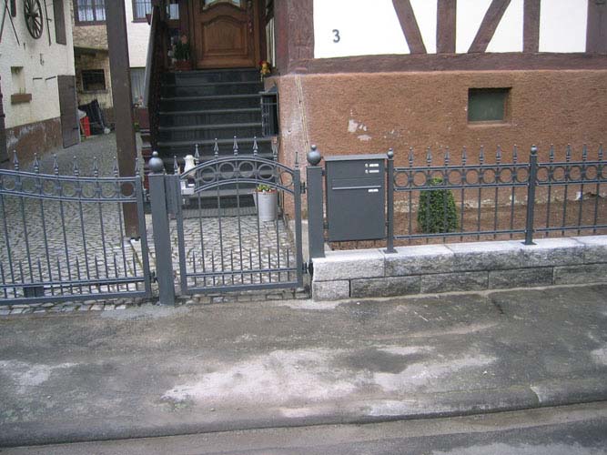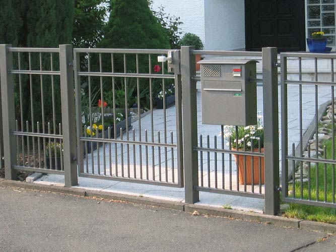 Personen oder Tiere, die nichts darauf zu suchen haben, laufen über Ihr Eigentum? Ihnen fehlt eine Zaunanlage. Wir bieten Ihnen Zäune vom Maschendrahtzaun bis hin zum ganz individuellen Zaun Ihres Geschmacks. Zaunanlagen mit Hoftoren als Flügeltor, Schiebetor, freischwebendes Schiebetor mit und ohne Antrieb, auch für den industriellen Bereich. Für Ihre tägliche Post können wir Ihnen eine formschöne Briefkastenanlage integrieren oder freistehend anbieten. Zaunanlagen in Aluminium, Stahl, Edelstahl. Beschichtungen in allen Farben nach der RAL-Farbkarte. Zum Vergrößern bitte Bild anklicken.